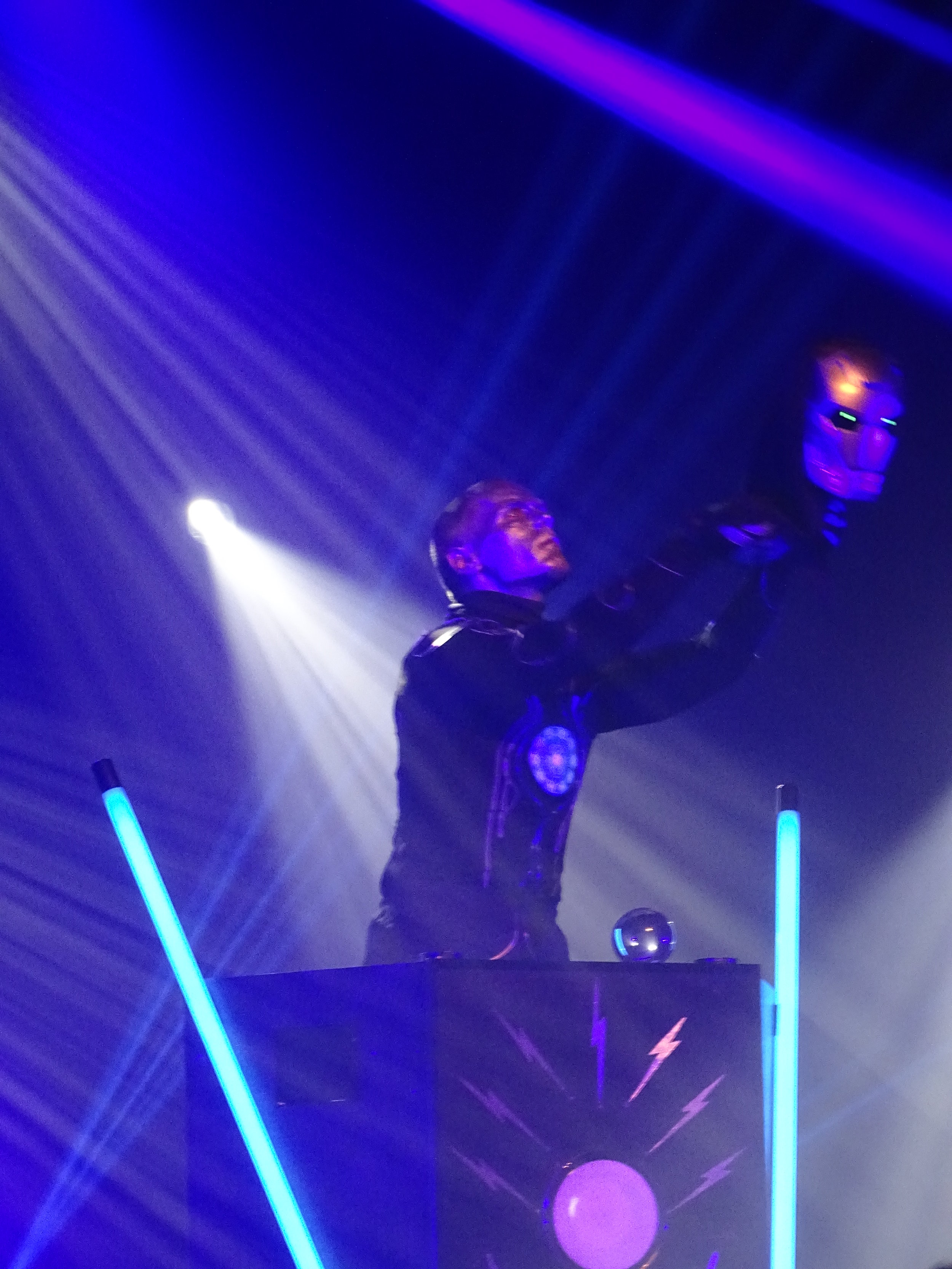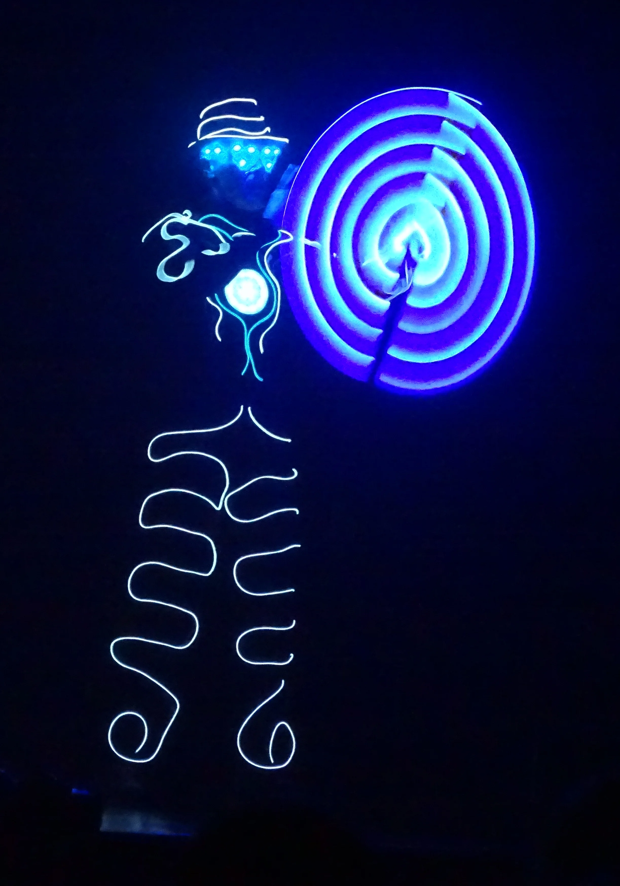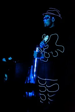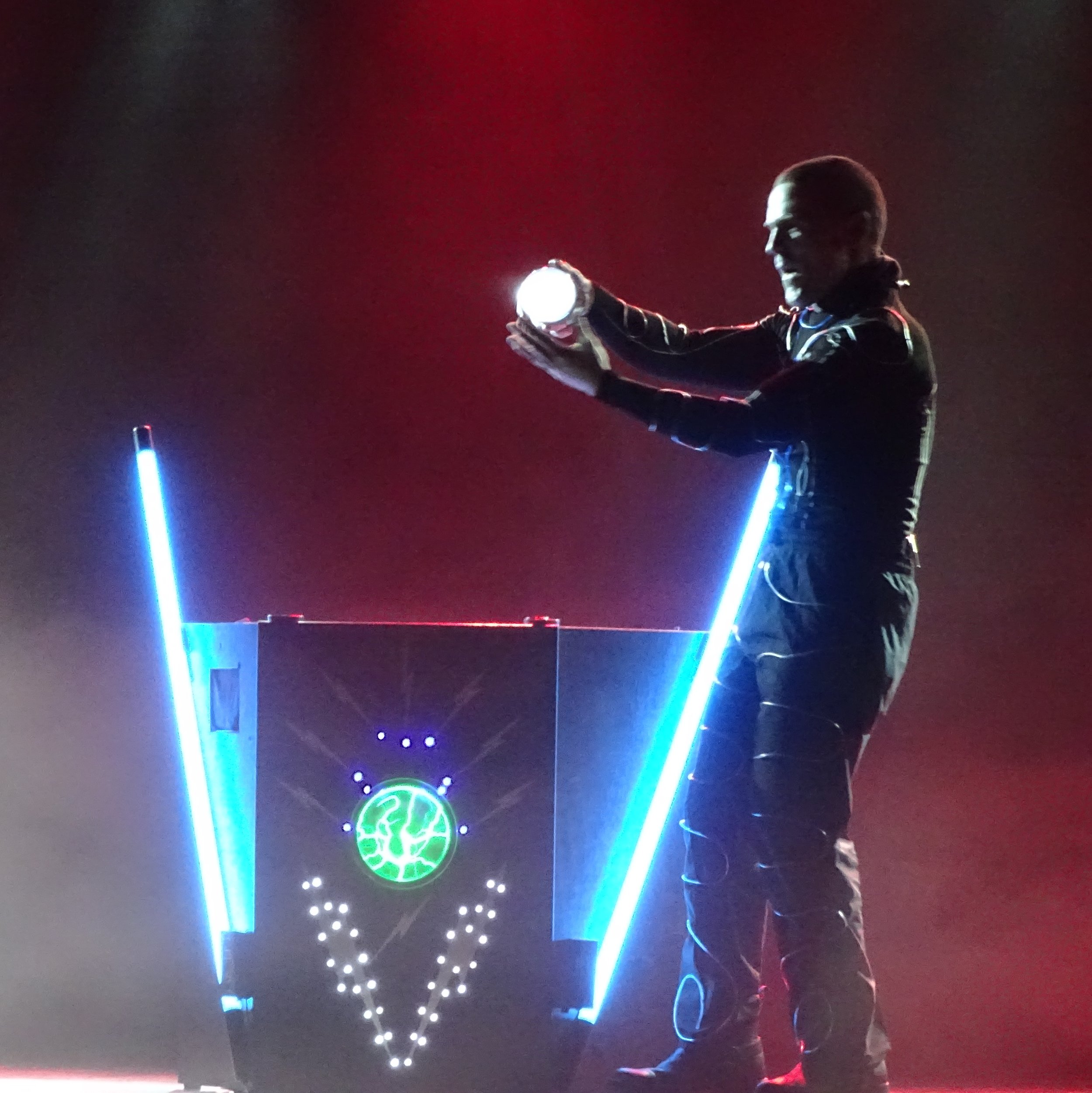 Un numéro haut en couleur et en lumières, qui crépite, qui éclaire et ne nécessite qu'une prise de courant, une possibilité d’obscurcir la pièce et un espace suffisant.